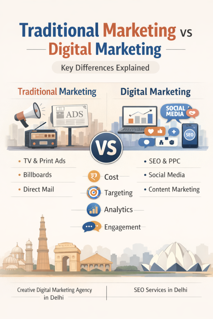 Marketing has always been the backbone of business growth. From newspaper ads and billboards to Instagram reels and Google search ads, the way brands connect with customers has dramatically evolved. Understanding the difference between traditional marketing and digital marketing is crucial for businesses that want to stay competitive in today’s fast-paced environment.